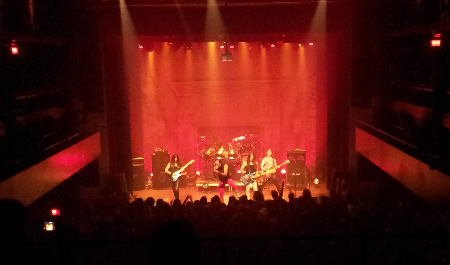 Visuellement, tous les membres ont émulé le style des gars de Maiden, avec des pantalons souvent trop serrés (ah! les doux souvenirs des 80’s!), mais ce qui surprend le plus, c’est la qualité sans reproche des interprétations. Autant les guitares, que la basse, que la batterie, tout y était. Mais encore plus solide que tous ces instruments, la voix était tout simplement parfaite. On aurait cru entendre Bruce Dickinson en personne. Jusque dans l’accent. Et en plus, le chanteur avait presque la même énergie, courant et sautant un peu partout sur scène. Vers la fin du show, il semblait un peu plus épuisé (avec raison), mais il s’est donné à fond toute la durée du spectacle. Les solos étaient extrêmement solides, et les ambiances étaient très bien respectées.