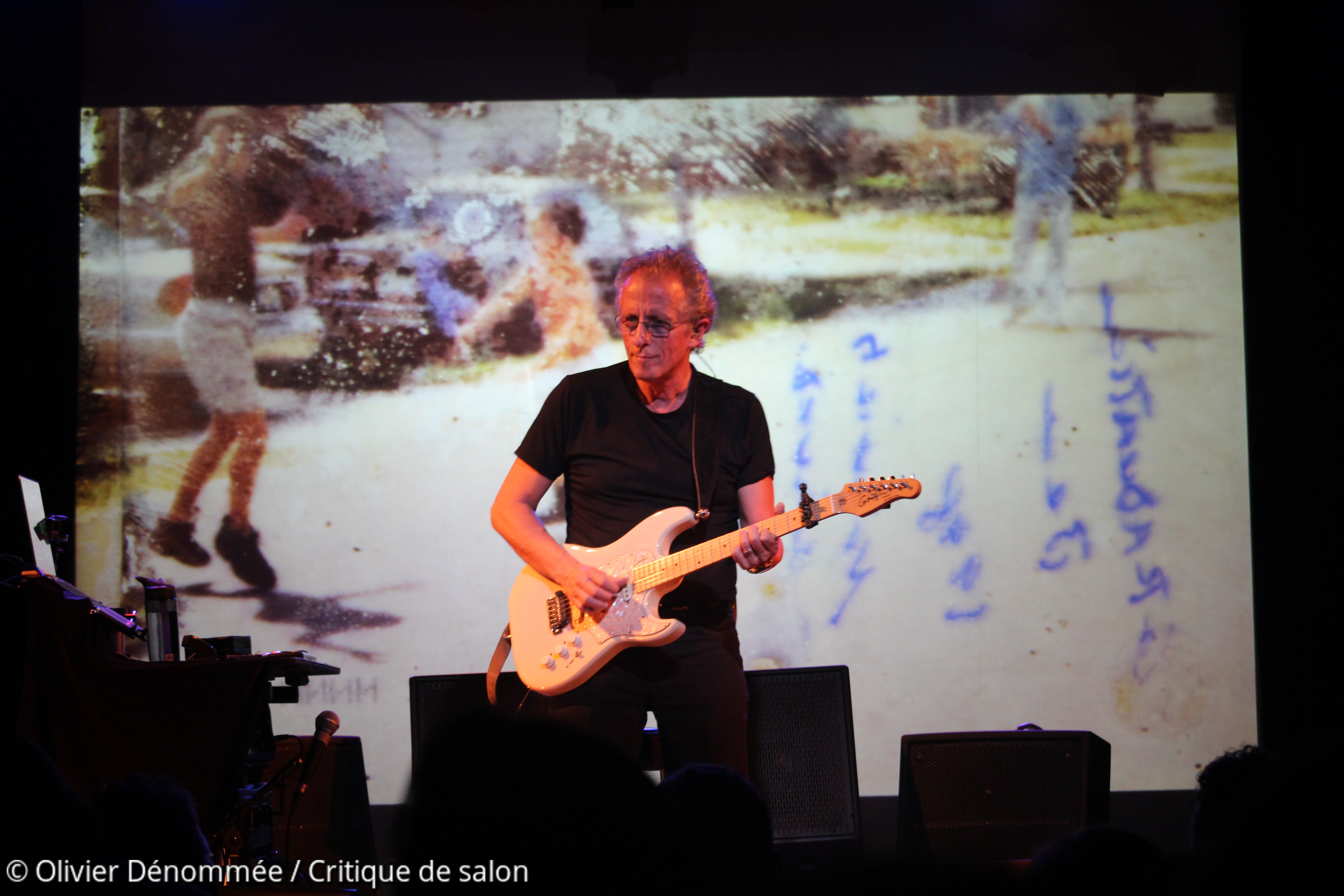 Michel Cusson est un excellent musicien, et on le savait bien avant le spectacle. Par contre, le show aura permis de mieux saisir l’inspiration derrière chacune des compos. Nous savions que c’est un album de photos jeté à la mer et récupéré qui était à la base du projet, mais l’inspiration ne s’est pas arrêtée là : le compositeur a creusé dans son propre passé pour s’aider à créer de beaux moments, tantôt de nostalgie, tantôt d’intensité. Sur album, c’était déjà très fort, mais en spectacle, il s’est agréablement laissé aller! Après un solo presque endiablé, il a dit, en riant, que «Ça fait du bien de faire sortir le méchant». Il a tout de même promis qu’il en restait encore un peu pour la suite. Pour ajouter à l’ambiance, derrière lui étaient projetée des photos, souvent délavées et usées par le temps. Il a admis que c’étaient les photos qu’il a récupérées, et que ce qu’on pouvait voir n’avait même pas été retouché.