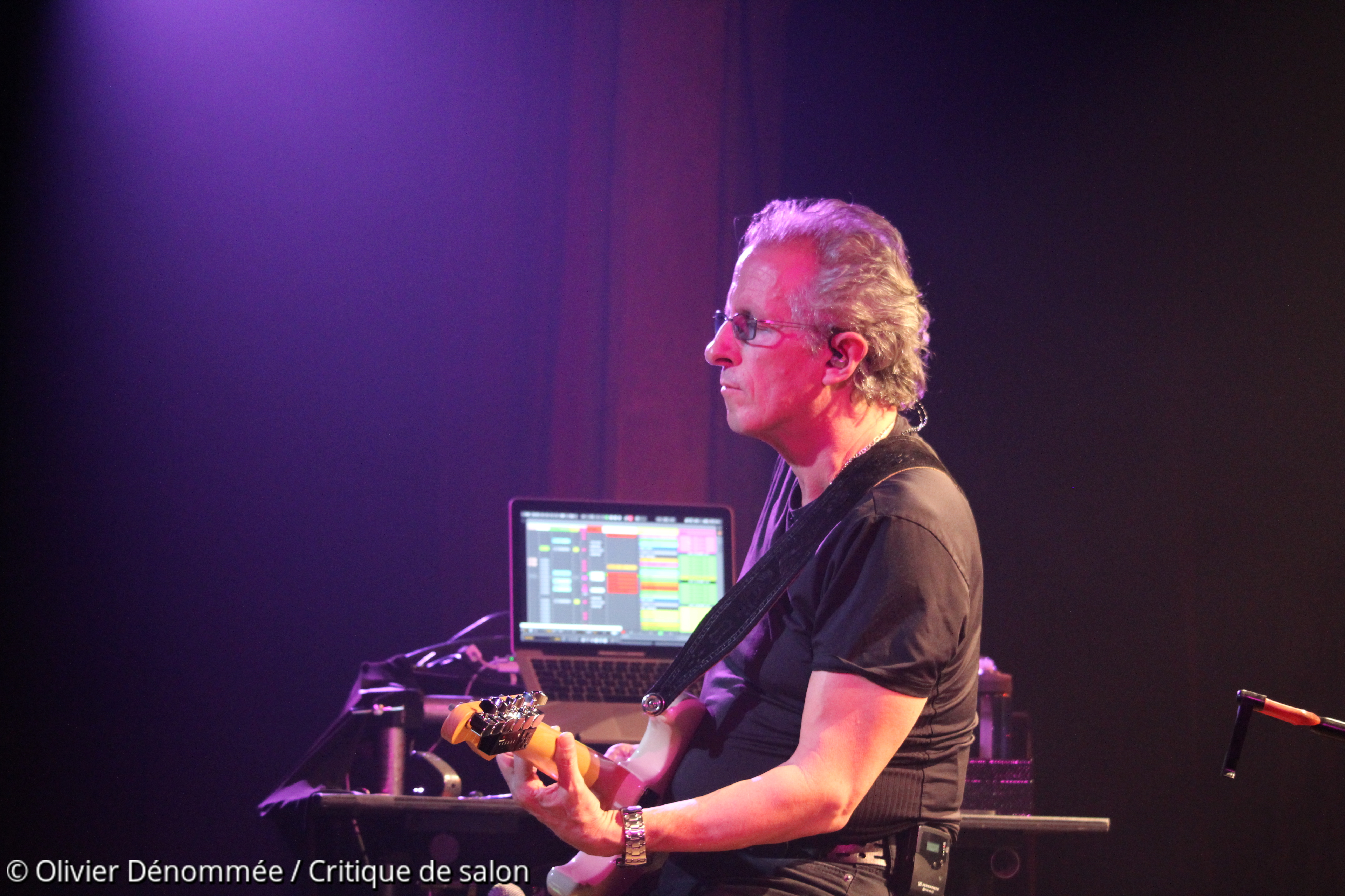 Si Michel Cusson était en parfait contrôle de son instrument, c’est lorsqu’il était au micro qu’il montrait son côté vulnérable. Visiblement heureux d’avoir un public aussi réceptif devant lui, il semblait quand même timide par moments, accrochant aussi à quelques reprises ses pédales de loops, brisant un peu le moment avec de la musique qui démarre au mauvais moment. À chaque fois, cela a détendu la salle et cela ne l’a pas empêché de poursuivre avec le sourire et avec justesse.