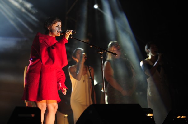 Plusieurs beaux moments ont ponctué la soirée, notamment la très belle interprétation de Va-t’en pas par Safia Nolin, accompagnée de son fidèle complice Joseph Marchand. La jeune chanteuse a été accueillie chaudement par la foule qui l’attendait à bras ouverts. On a également pu voir un Yann Perreau tout en contrôle du haut de la passerelle média, surprenant ainsi le public dans un puissant L’homme-canon chanté a cappella. Le moment fort de la soirée revient cependant à Klô Pelgag et Philippe Brach qui ont su donner une nouvelle flamme au classique Les Yankees, appuyés des voix solides des Sœurs Boulay, Émilie Laforest et Safia Nolin. Cet arrangement que l’on a pu connaître dans le disque hommage Desjardins était encore plus poignant en live, et ce n’est pas peu dire.