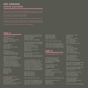 Le Canadien Eric Chenaux a déjà la réputation de composer de la musique à tendance expérimentale, et Slowly Paradise n’y fait pas exception! Certains ont parlé de «musique conceptuelle qui ne sonne pas comme de la musique conceptuelle», mais la piste Wild Moon nous confirme qu’il ne faudra pas juste écouter avec nos oreilles.