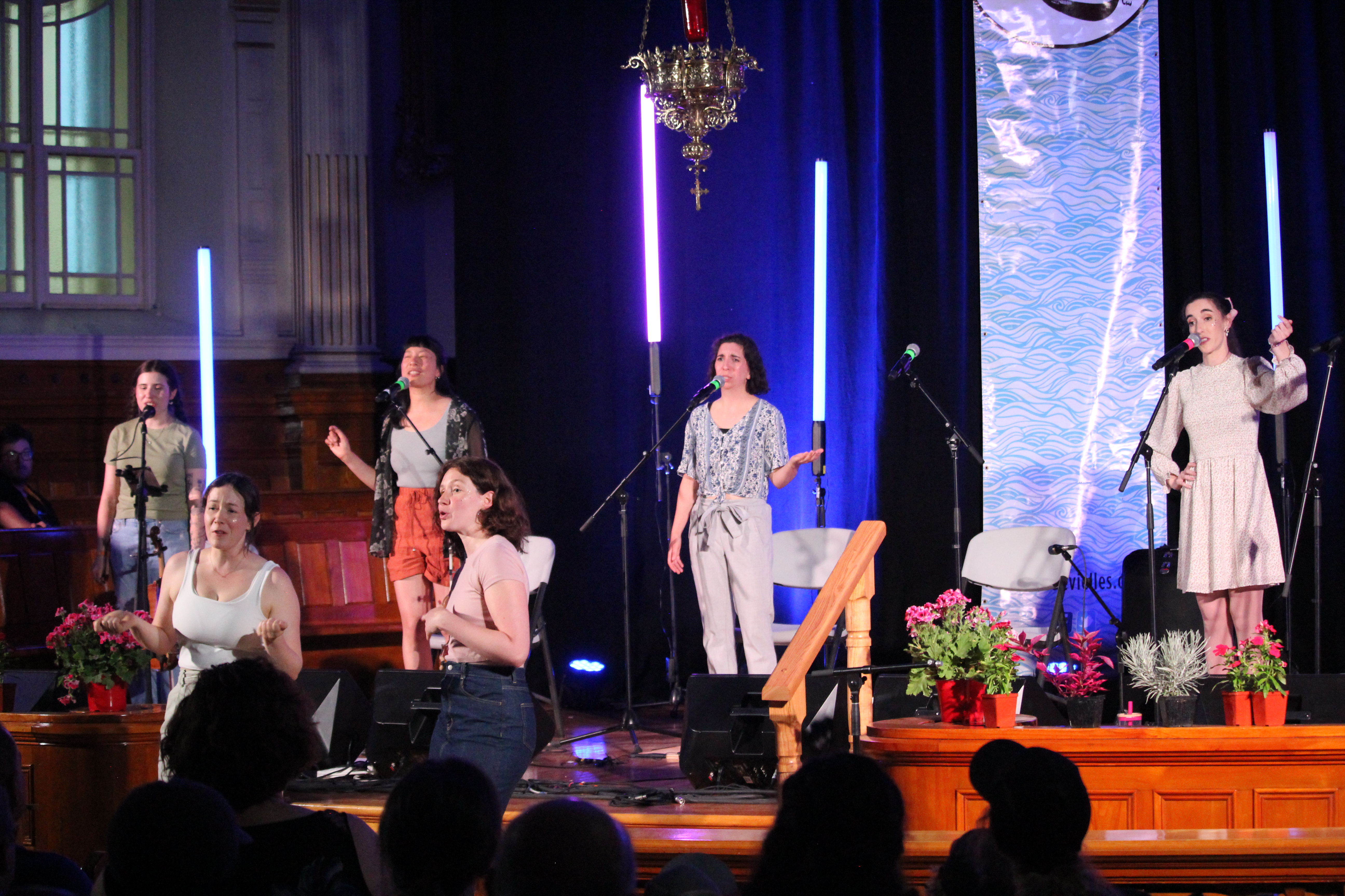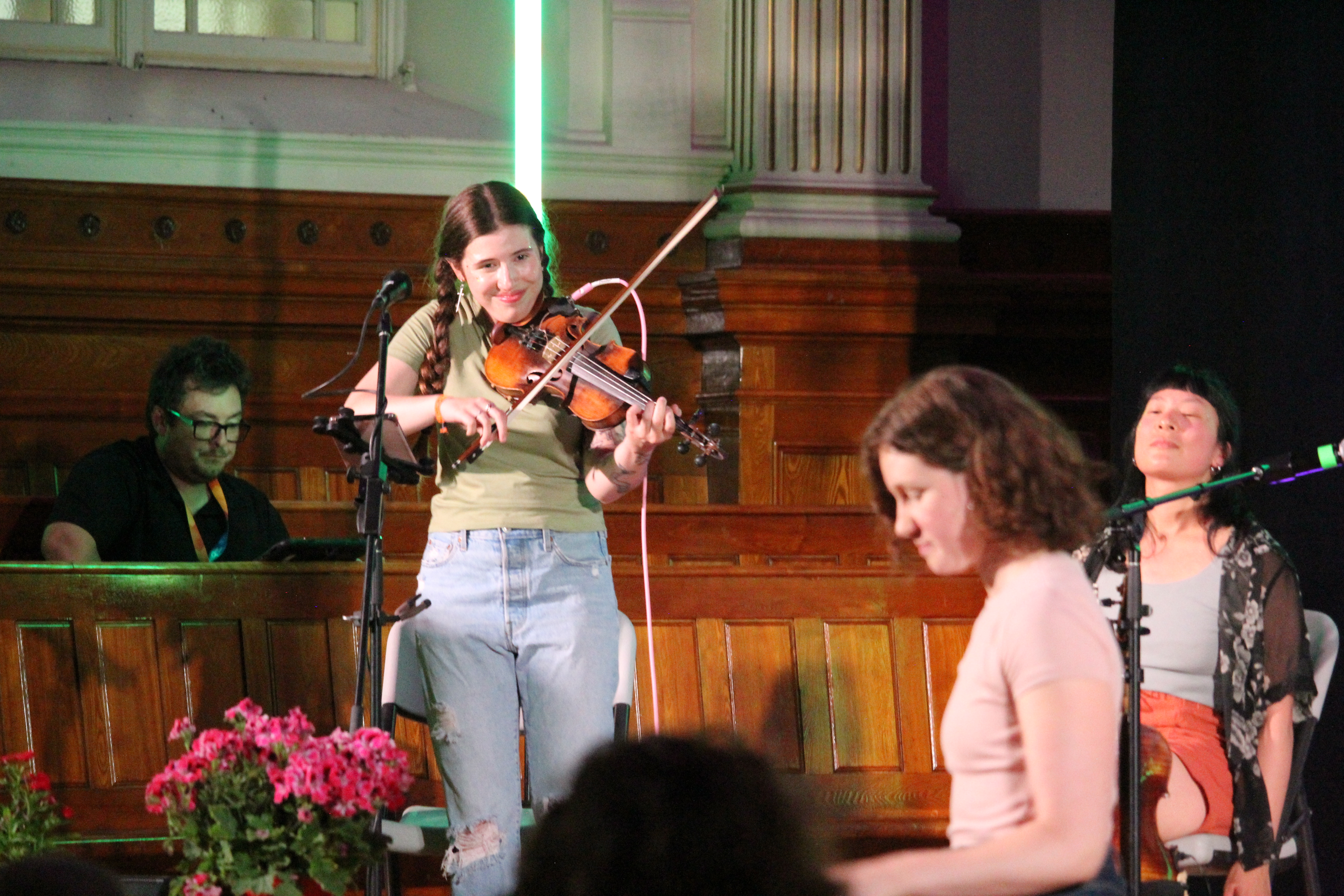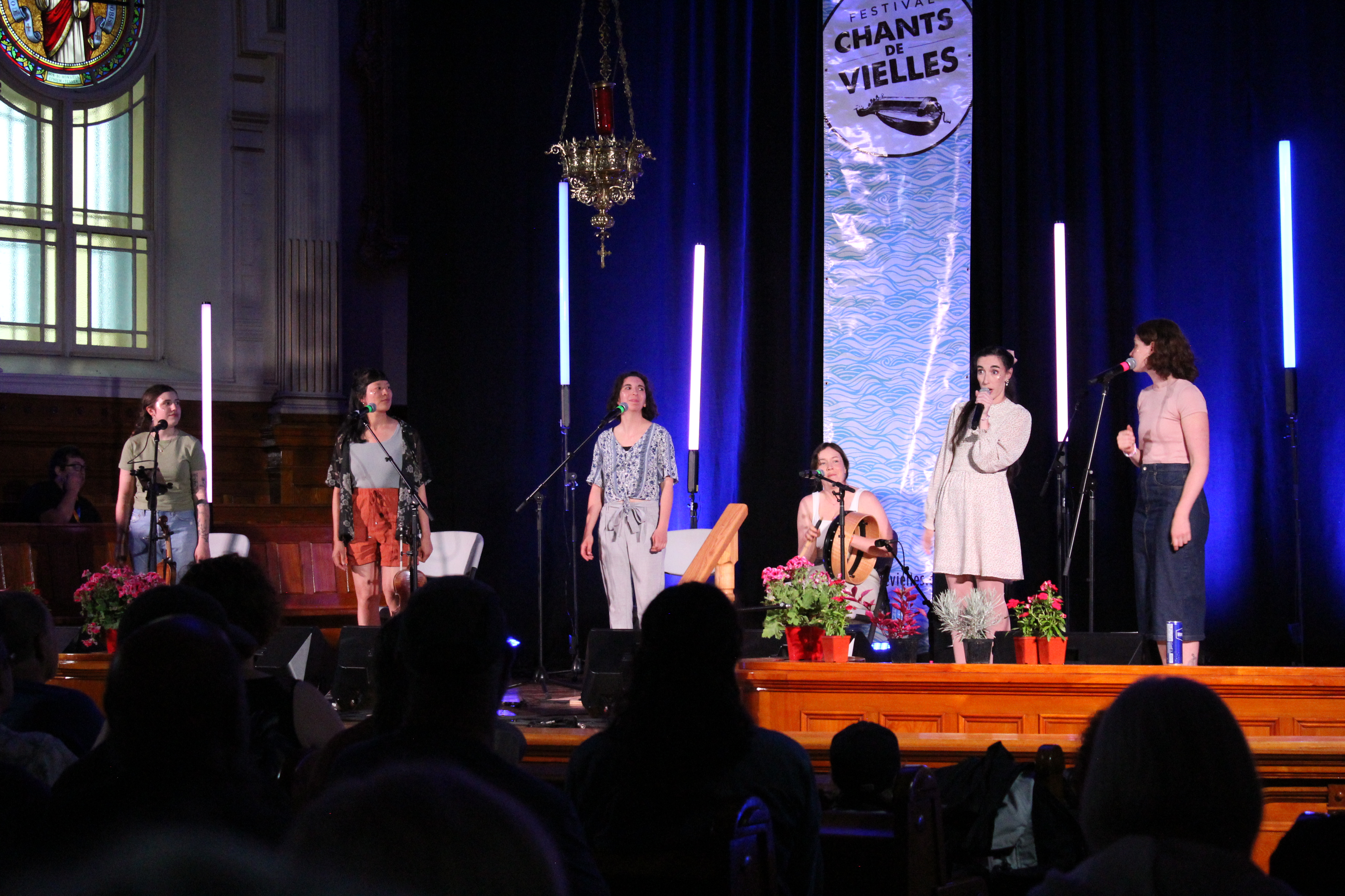 Des gigueuses sur scène avec Le Vent du Nord / Photo : Olivier Dénommée