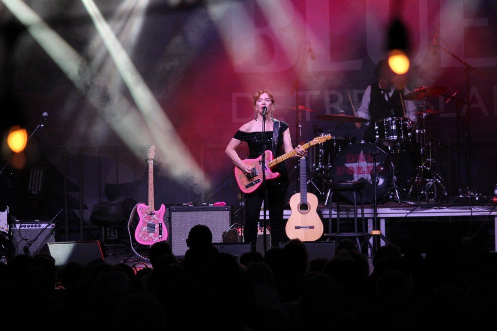 Ne désirant pas nous coucher aussi tard que les autres soirs, on ne prévoyait pas s’éterniser au spectacle de la Canadienne Sue Foley, mais on voulait tout de même entendre ce qu’elle avait à offrir comme blues. En fait, on avait brièvement fait sa connaissance en arrivant par hasard sur le site du festival pendant ses tests de sons un peu plus tôt en après-midi, mais la magie a fait son œuvre au coucher du soleil. C’est gênant d’admettre qu’on n’avait jamais entendu parler d’elle avant ce festival, alors que son premier album remonte à 1992, mais mieux vaut tard que jamais… 25 minutes de spectacle de Foley, entourée de 3 musiciens, nous auront convaincu qu’elle se défend aussi bien avec une guitare qu’avec un micro et on va assurément se souvenir de ce nom dans le futur.